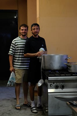 Unsere Trainer Lukas und Pascal lernten in der Zeit, wie man mit einer Nussschale als Trainerboot möglichst große Wellen erzeugt und in einem Boot mit Leck nicht sinkt.