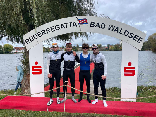 Auch die Mädchen waren am Samstag erfolgreich: Frieda Braun und Emilia Hasenclever fuhren mit 17 Sekunden Vorsprung im Doppelzweier auf Platz 1. Am Samstag gewann auch der Mixed-Achter mit Anna Baur, Lea Schlenker, Annastasia Hochmuth, Sophie Kierdorf, Karl-Friedrich Pfeffermann, Gregor Bühler, Konrad Unger, Lukas Schulth und Steuermann Alexander Durkacz. Leider wurde dieser Sieg am Sonntag gleich durch einen zweiten Platz mit 0,4 Sekunden Abstand etwas getrübt. Anders war es bei Maximiliane Blaser, die sich im Juniorinnen-Einer sowohl am Samstag als auch am Sonntag vor der Konkurrenz behauptete und auf Platz 1 fuhr. Auch am darauffolgenden Sieg war sie beteiligt, denn Salome Horrer, Emilie Schaufler, Zoe Würfel und Maximiliane Blaser fuhren im Frauen-Doppelvierer auf den ersten Platz und ergatterten den Preis des Vorstands des Ruderverein Waldsee.