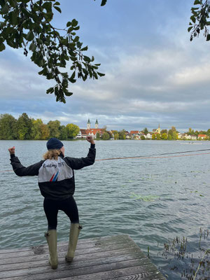 Samstag nach der Ankunft in Bad Waldsee begrüßten uns beim Riggern ein kalter Wind und einige wenige warme Sonnenstrahlen. Vorerst blieb es trocken. Unter diesen Bedingungen lieferte Lion Khalsi, der im Leichtgewicht-Jungen-Einer den ersten Sieg des Tages holte, einen wunderbaren Regattaauftakt. Kurz darauf gewannen Lukas und Tobias Geisenberger ihren Doppelzweier. Tim Kellner konnte sich bei den Jungen gleich zweimal, sowohl am Samstag als auch am Sonntag, mit vier Sekunden Vorsprung im Einer den ersten Platz sichern. In einem knappen Rennen konnten sich Lukas Geisenberger und Maximiliane Blaser im Mixed-Doppelzweier behaupten.